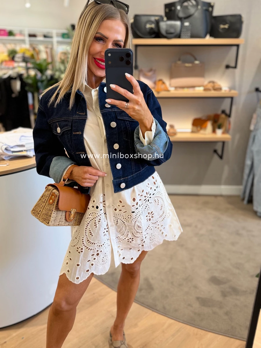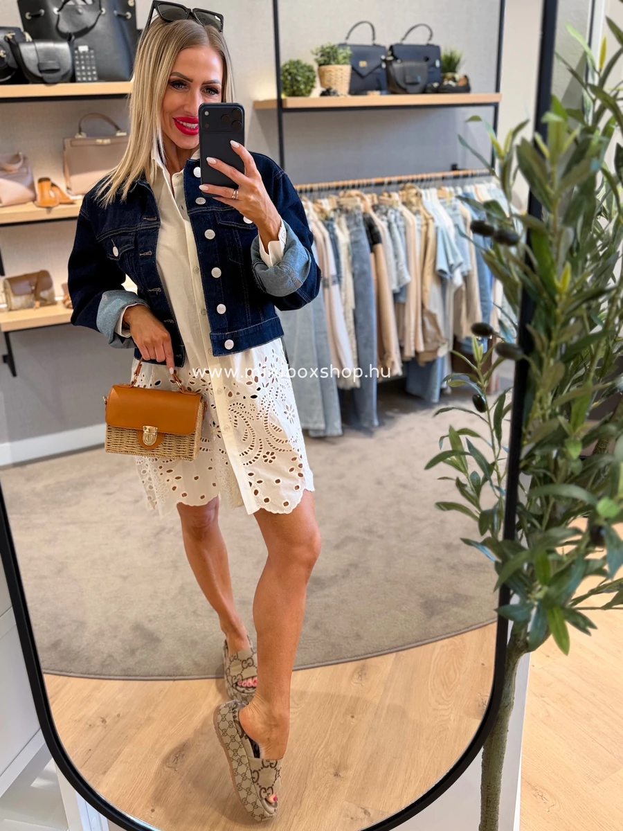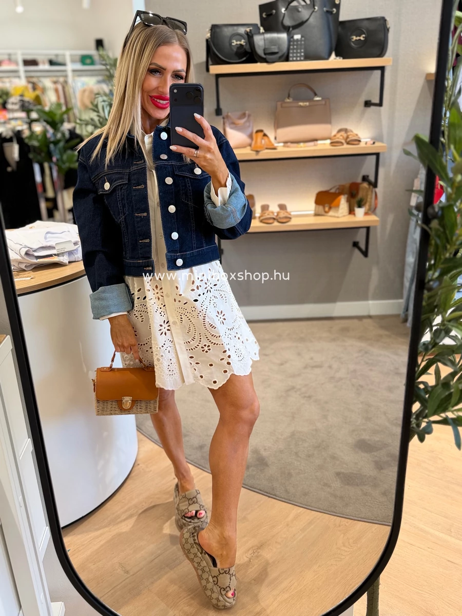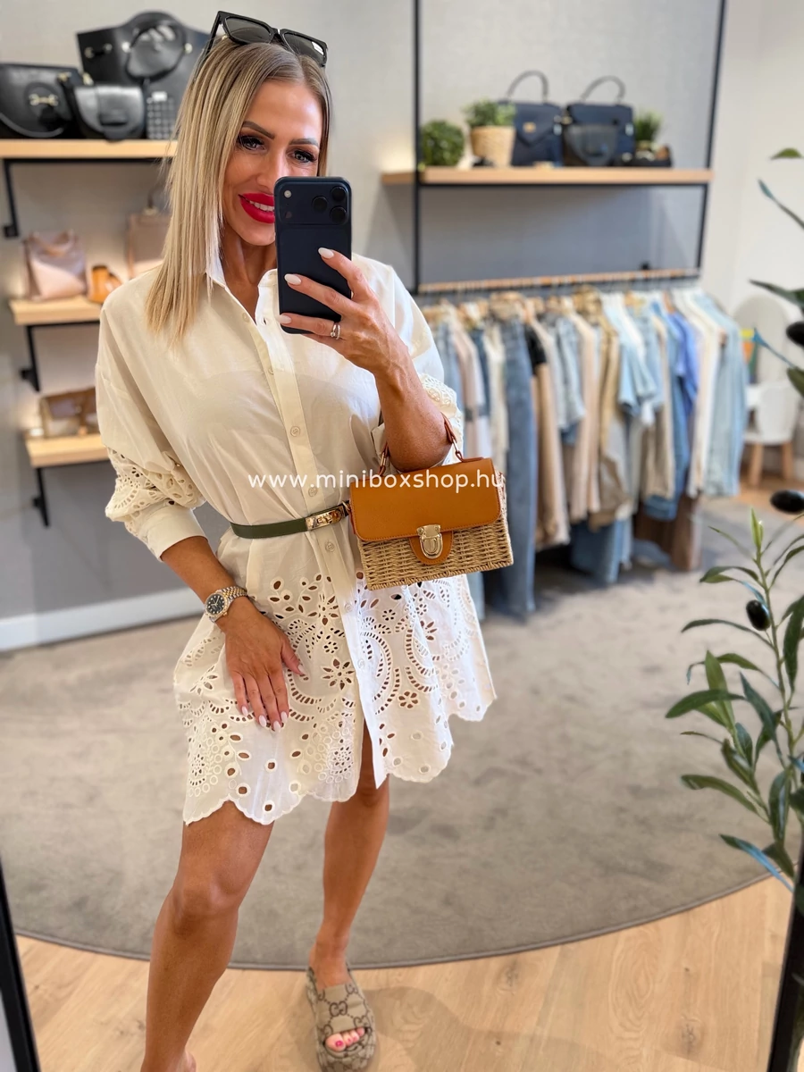 MIRA hímzett hatású midi ruha - 100% pamuttal - övvel