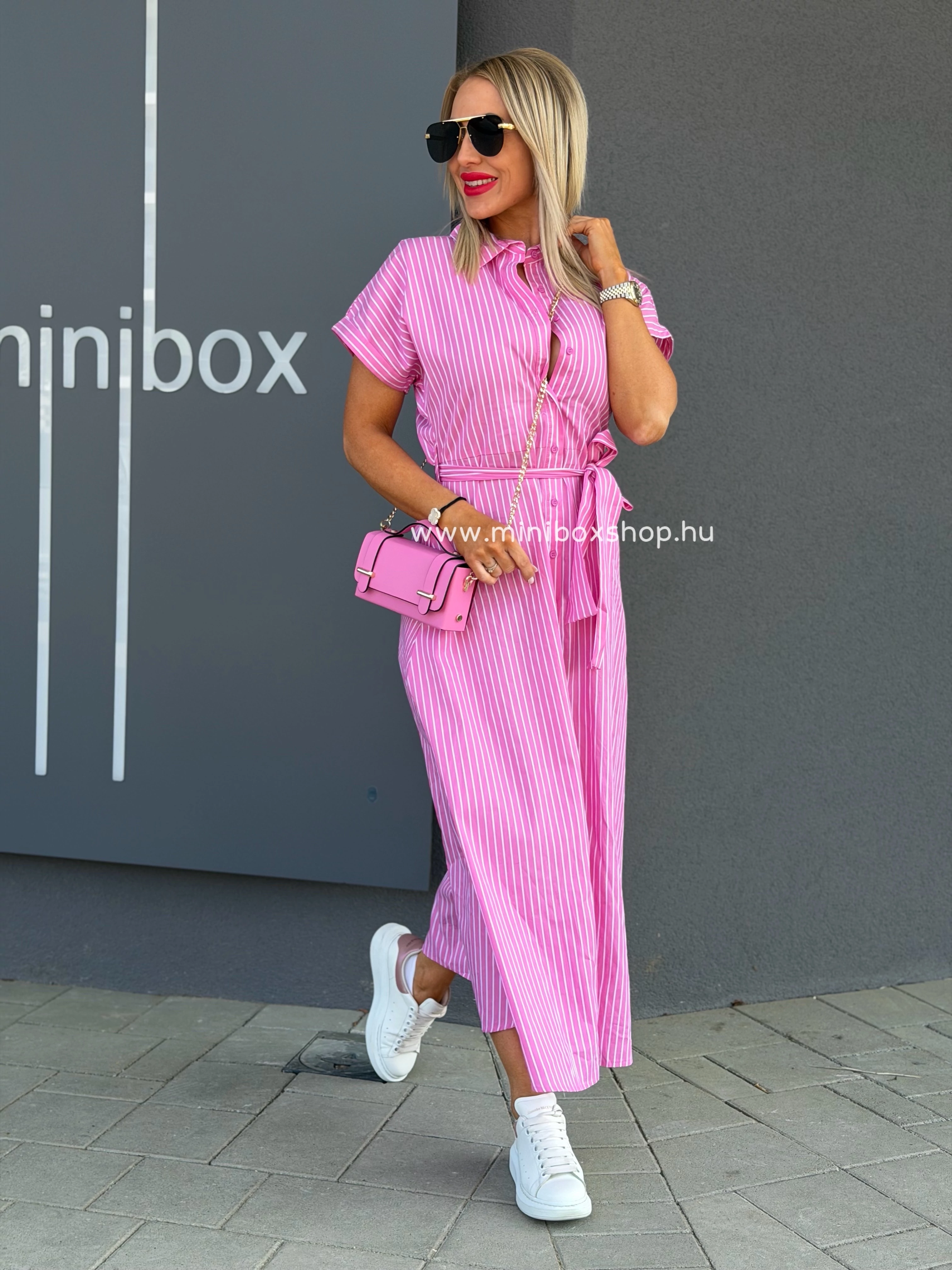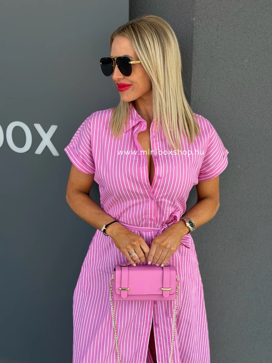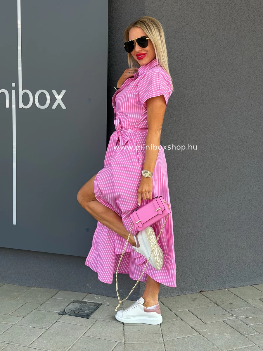 ANGI csíkos maxiruha - övvel - 100% pamuttal