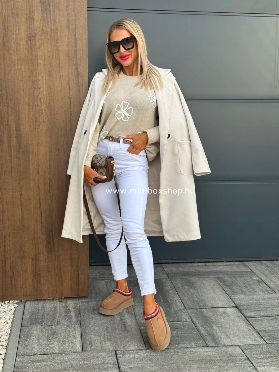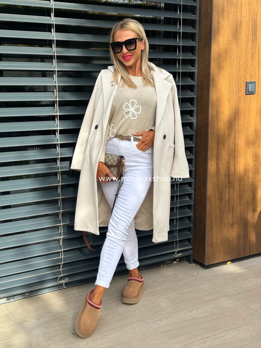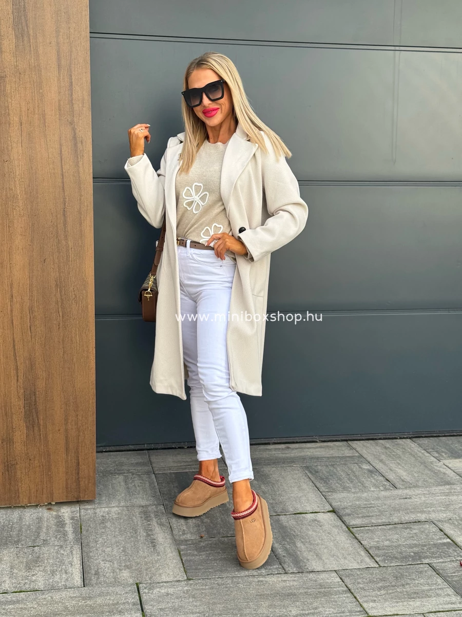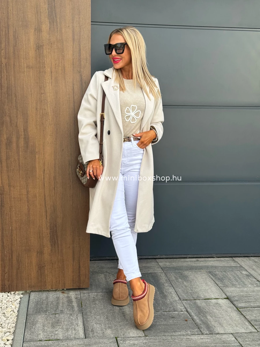 ANNA nyers szövetkabát - kitűzővel