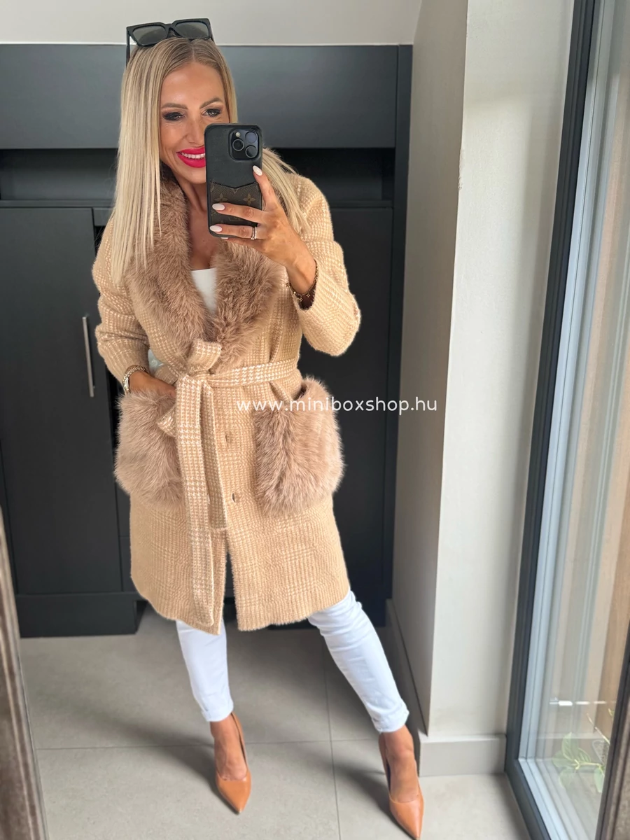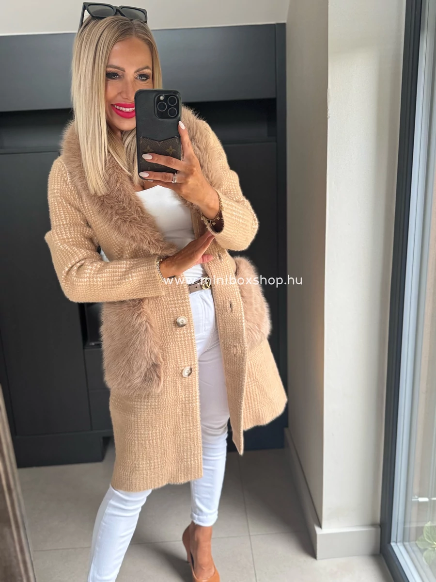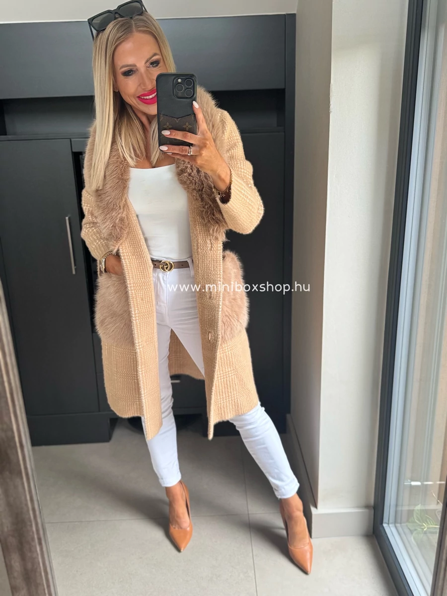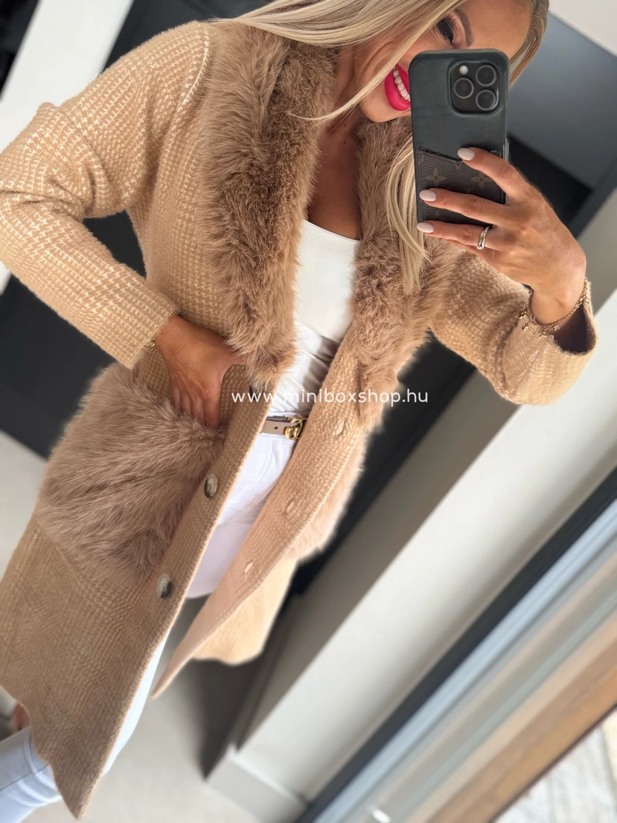 KLARA meleg kardigán/kabát - szőrmèvel