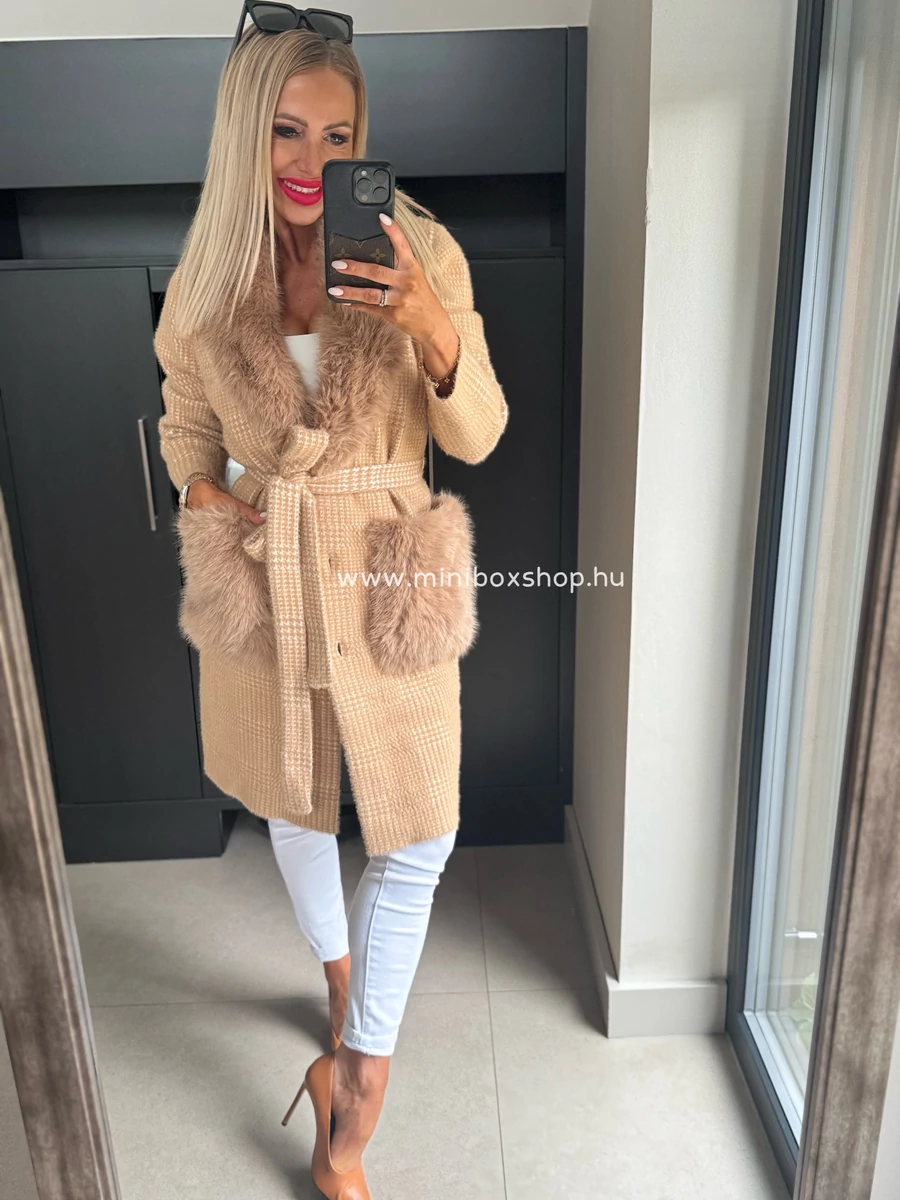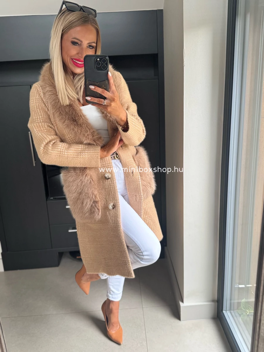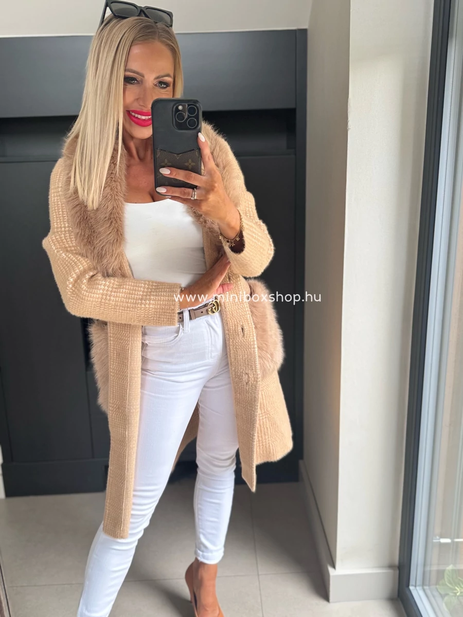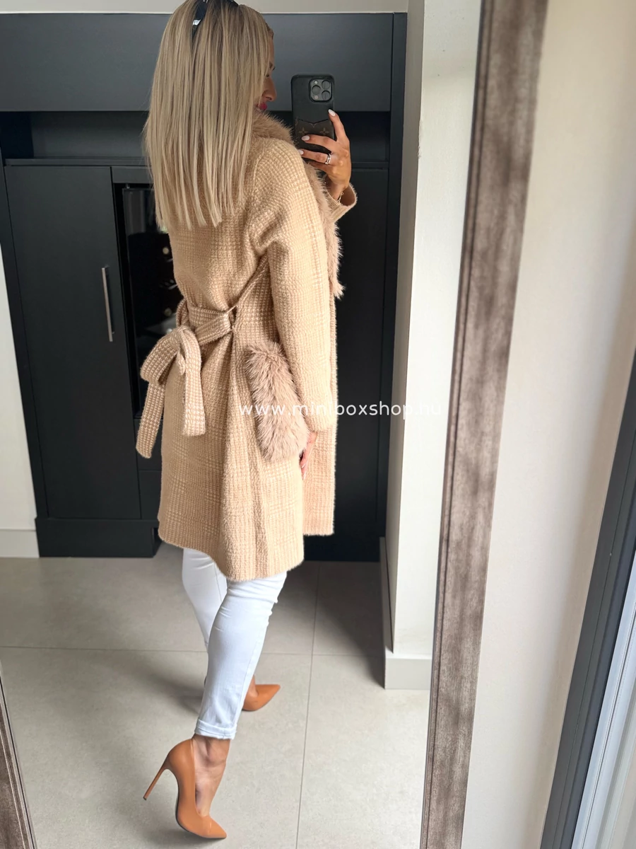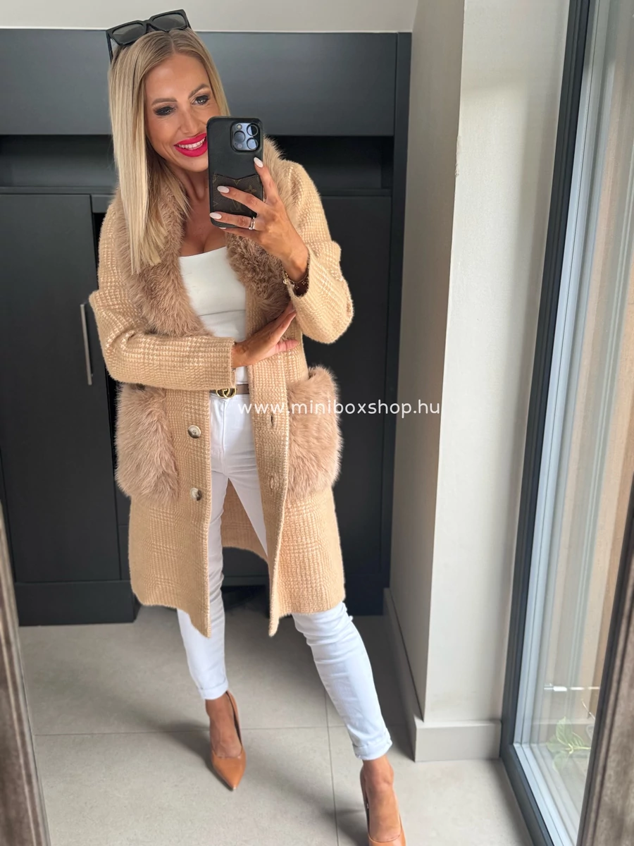 KLARA meleg kardigán/kabát - szőrmèvel