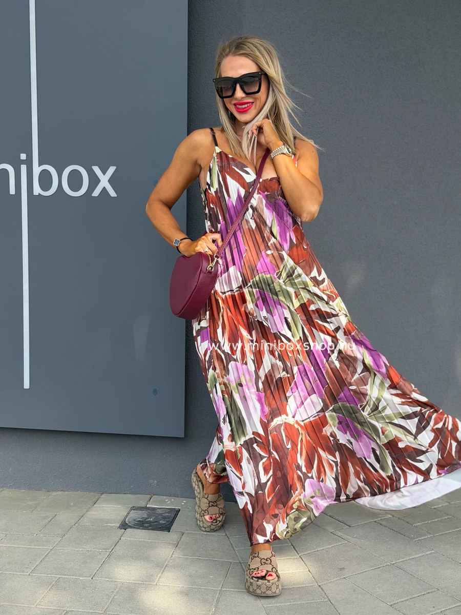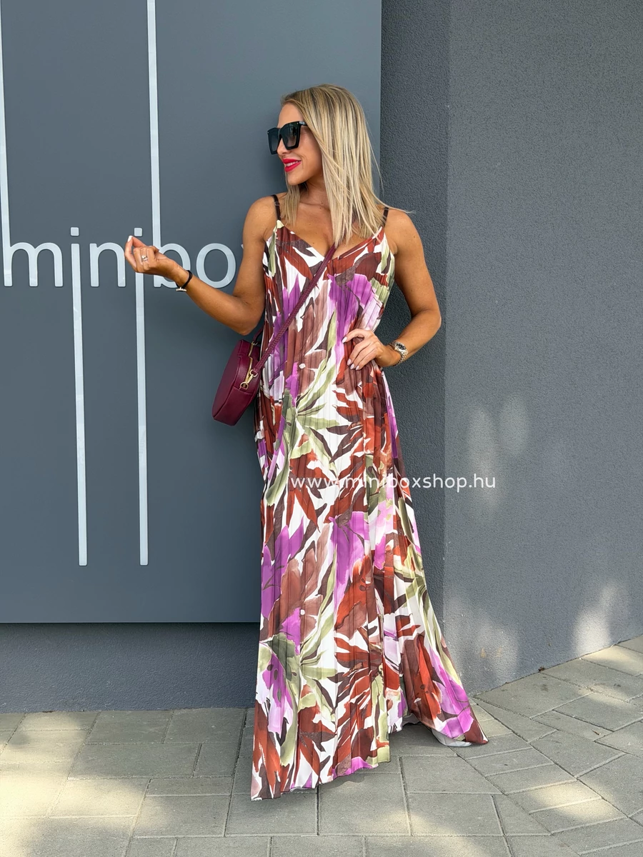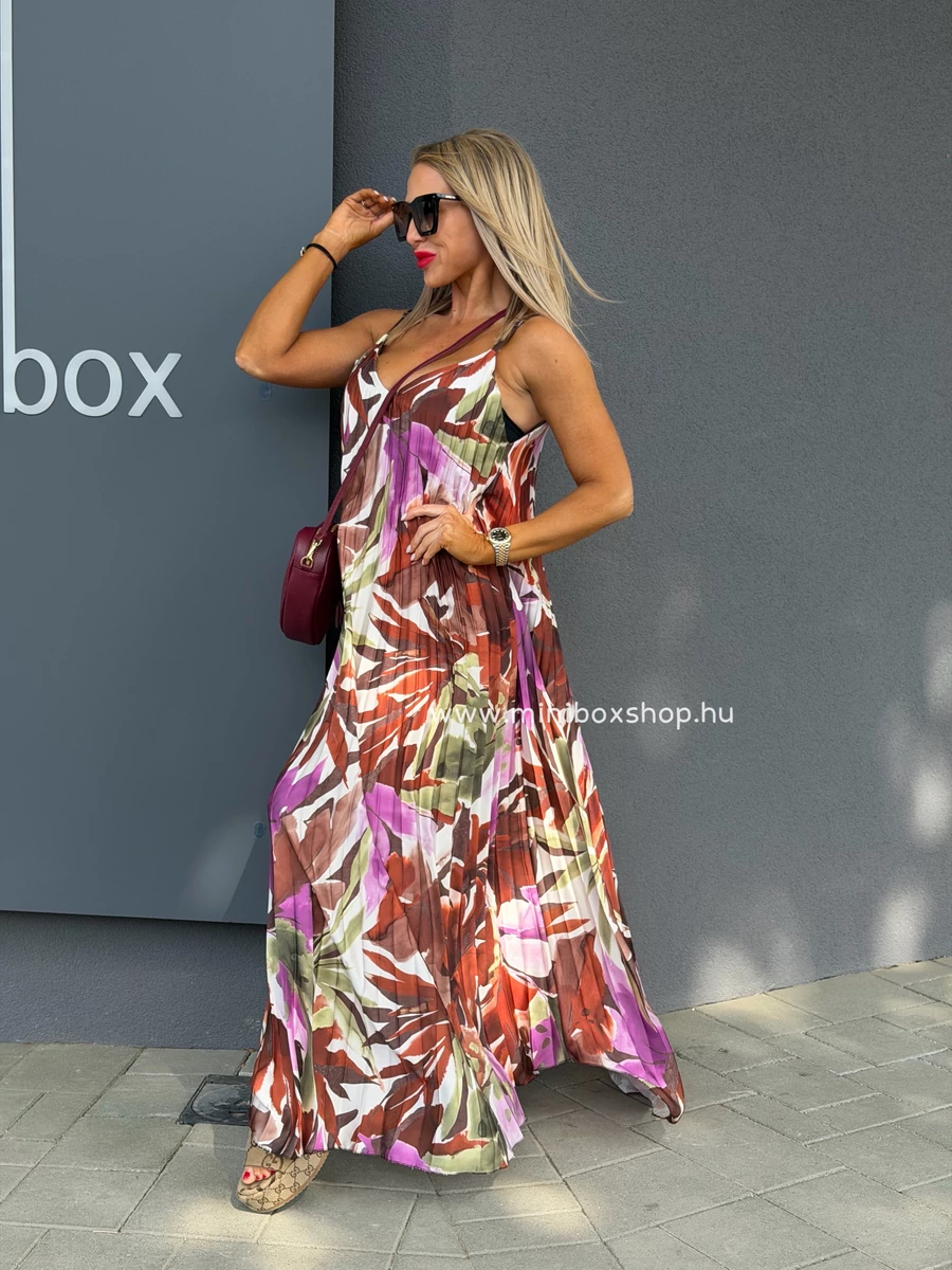 LAMIA plisszírozott mintás ruha - állítható pánttal