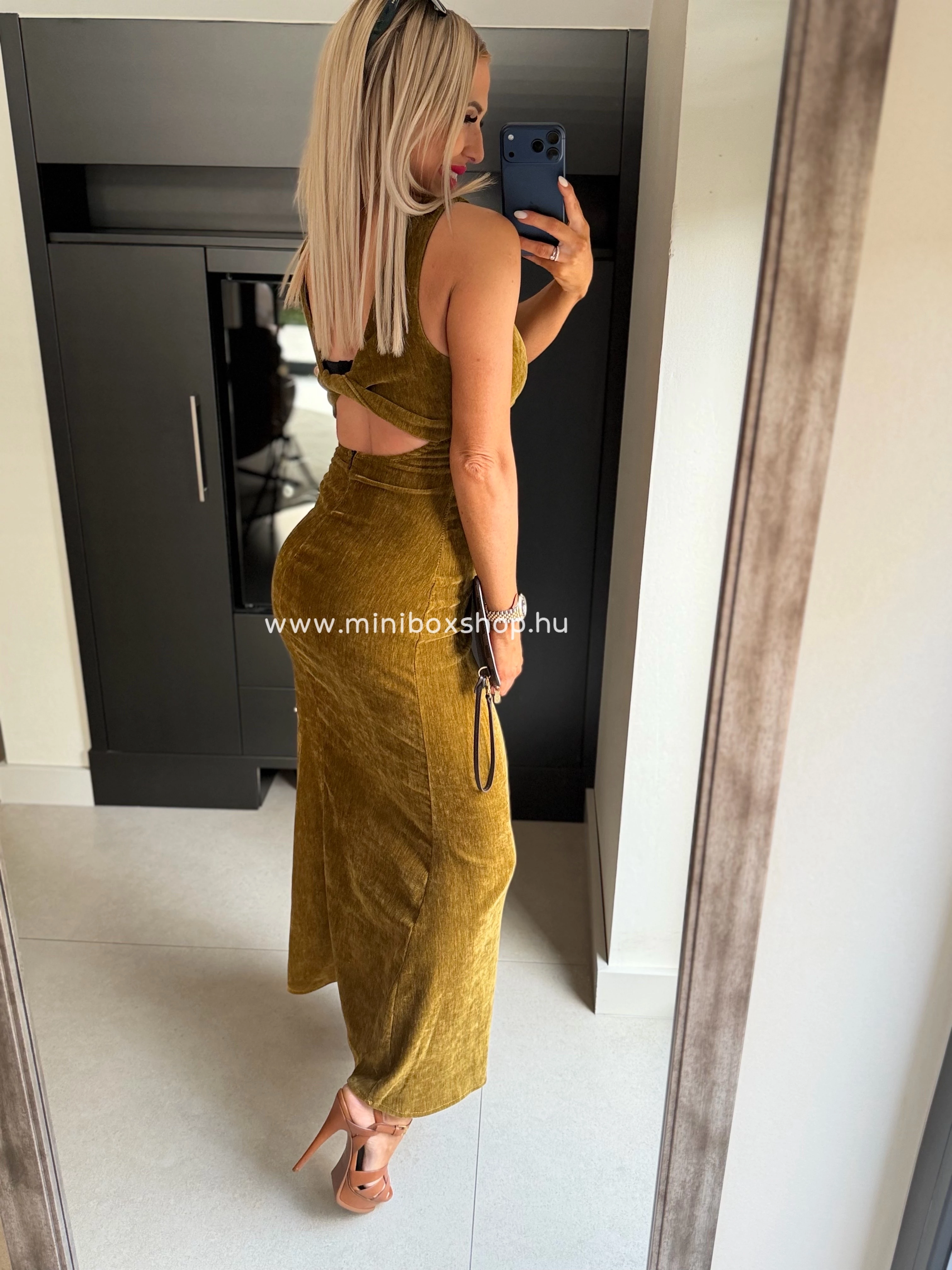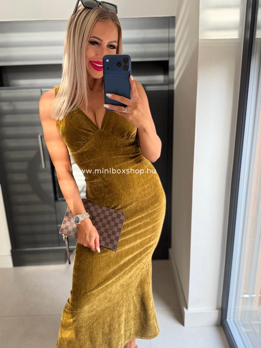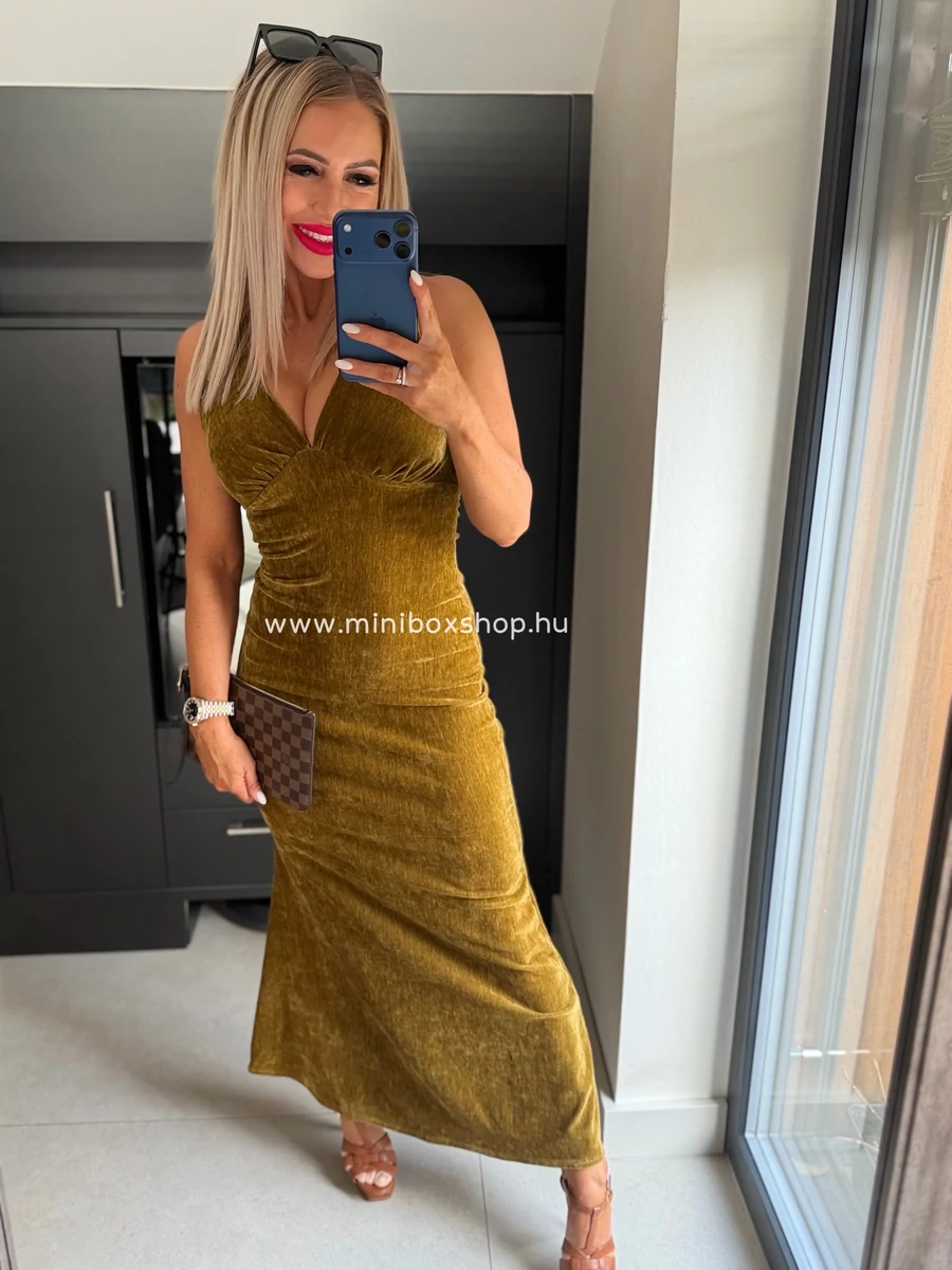 MATEO bársony ruha - csavart dekoltázzsal hátán