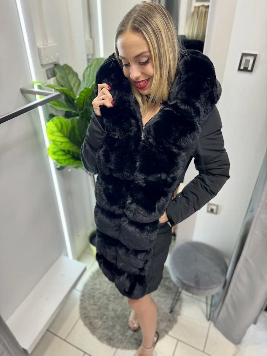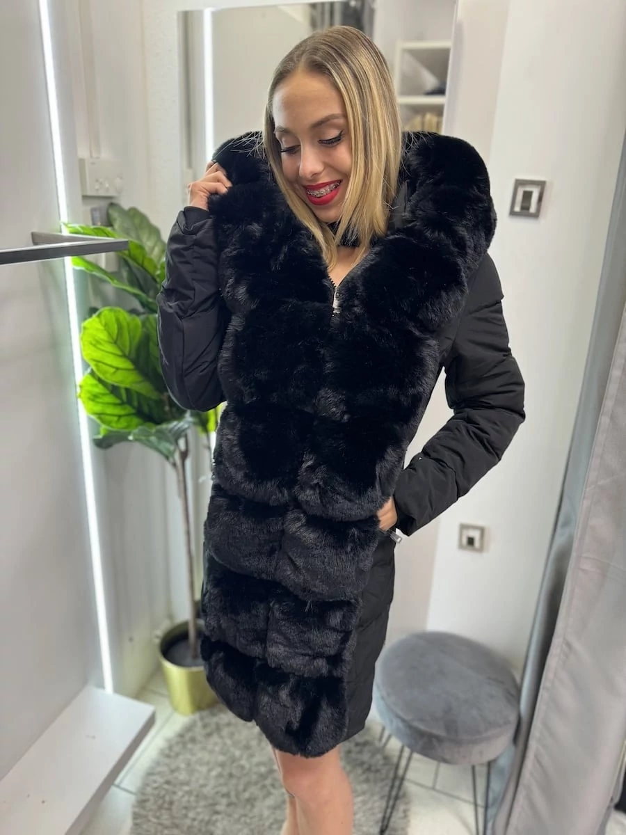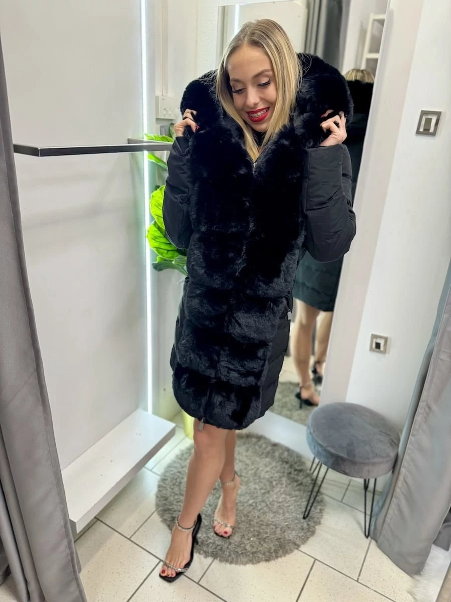 HENNA karcsúsítható steppelt kabát - lecsatolható szőrmével