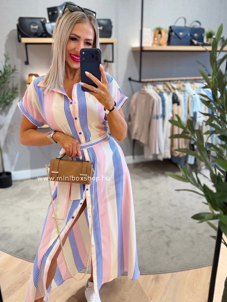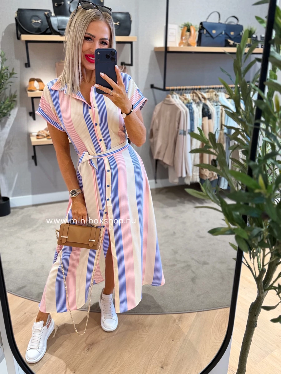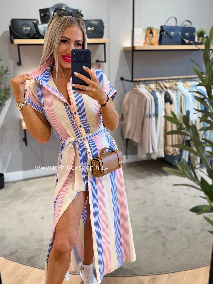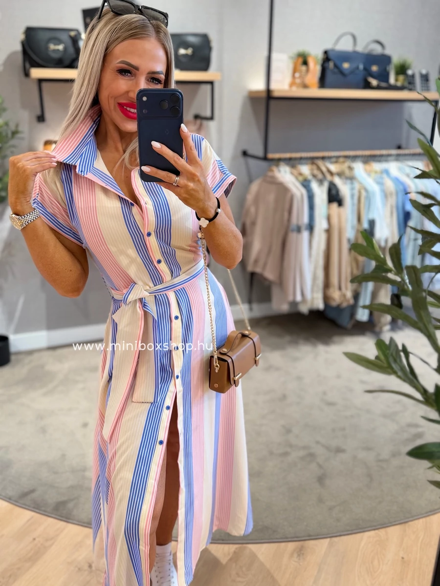 SUZY rövidujjú csíkos ruha - övvel