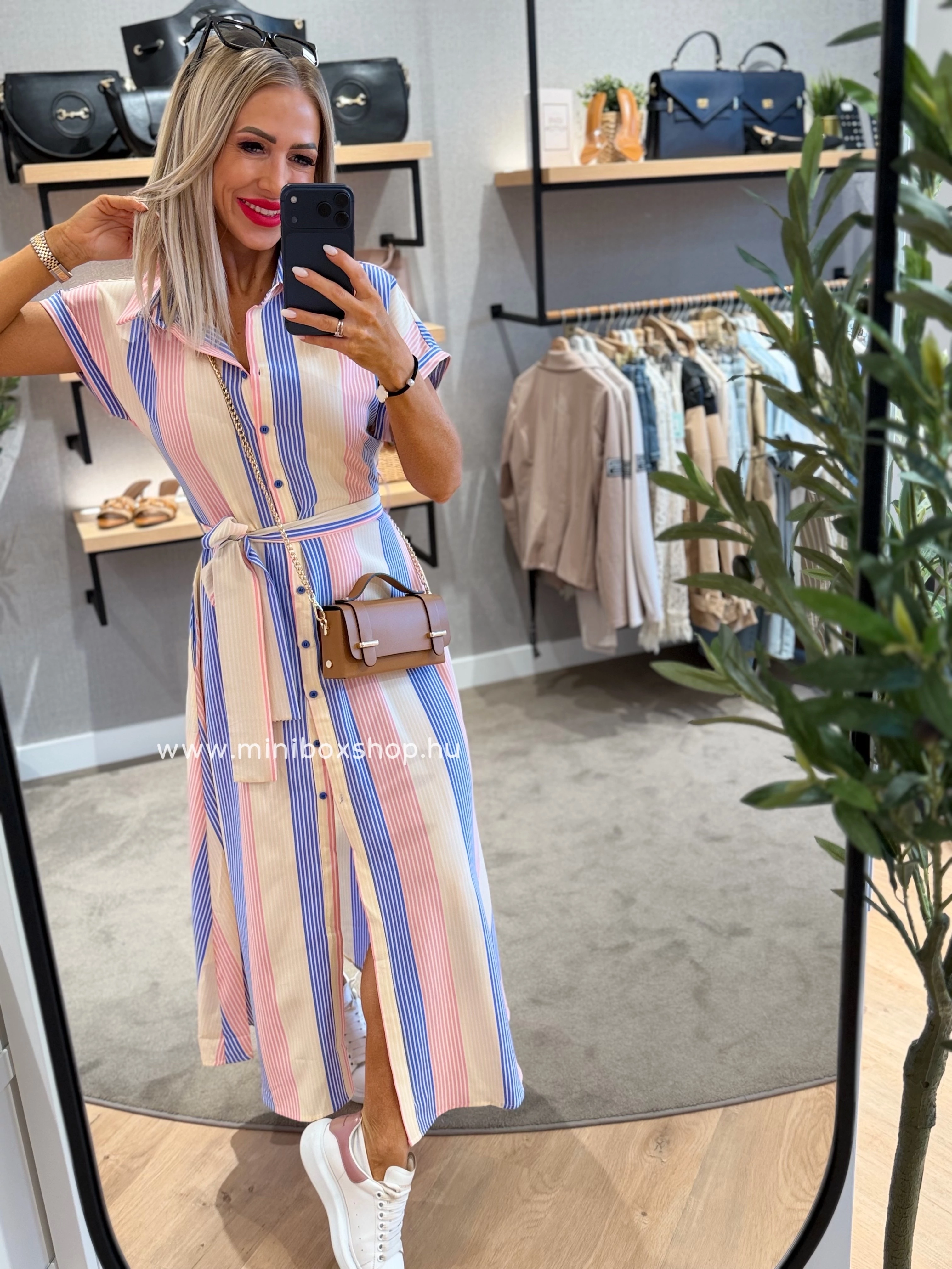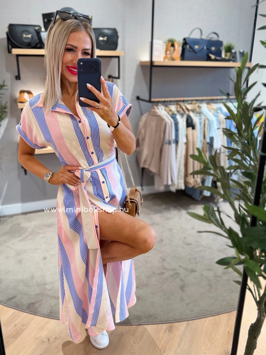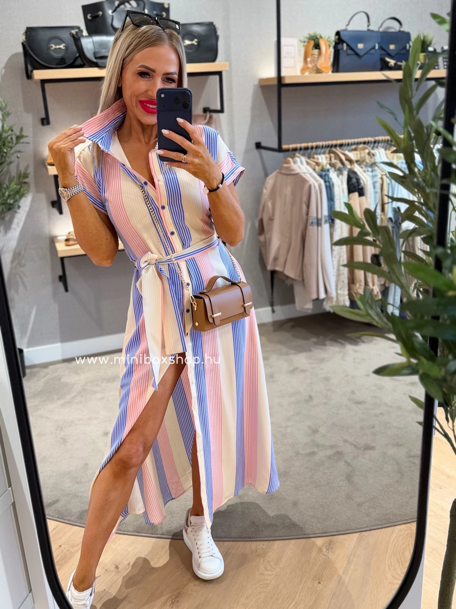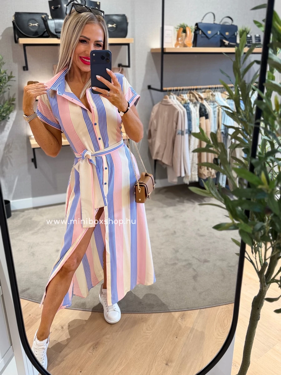 SUZY rövidujjú csíkos ruha - övvel