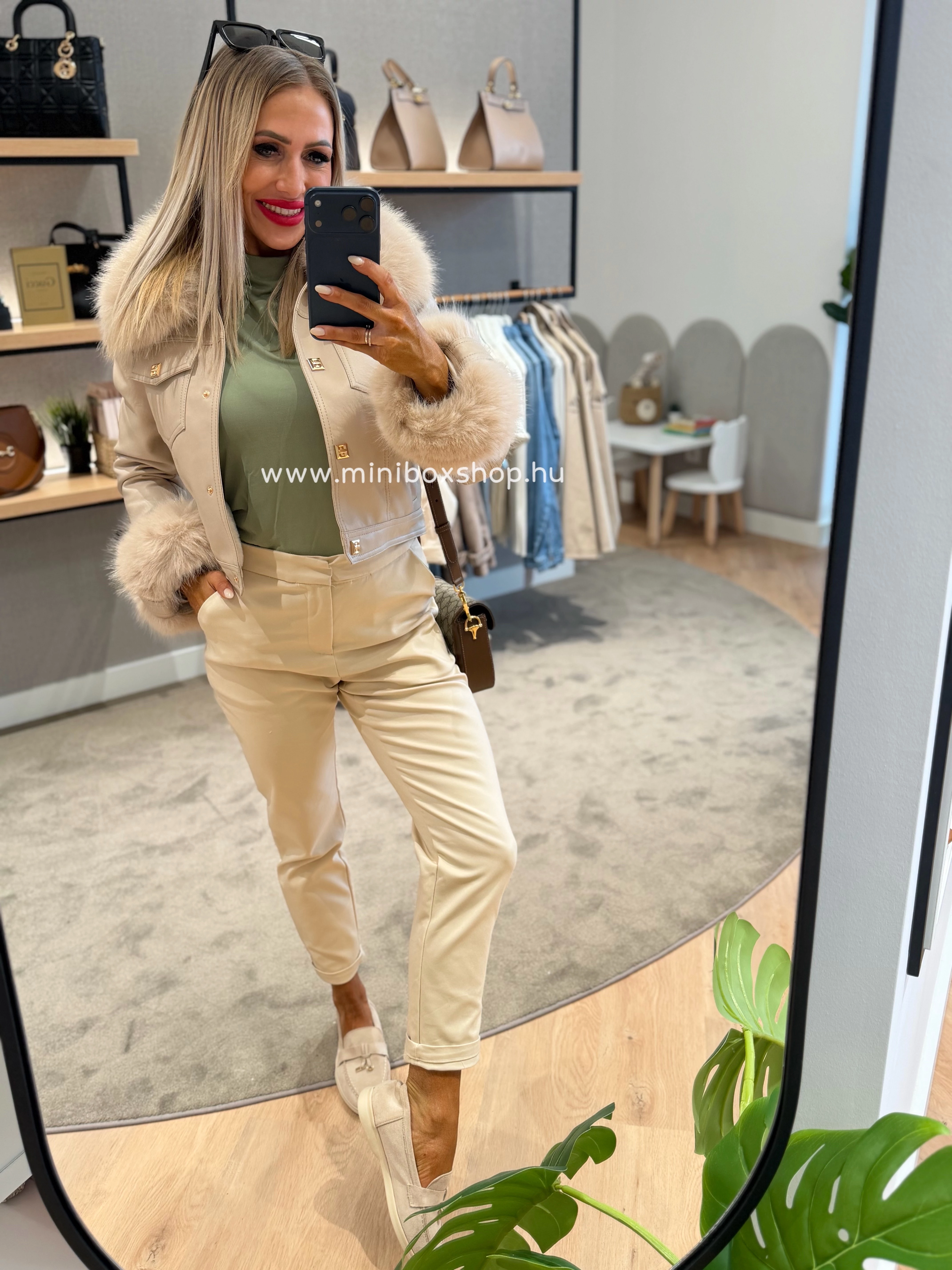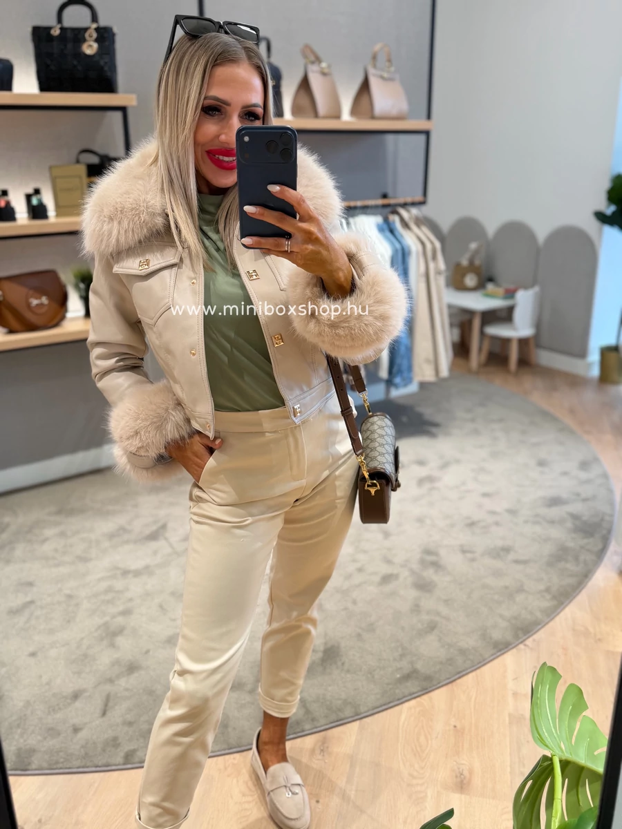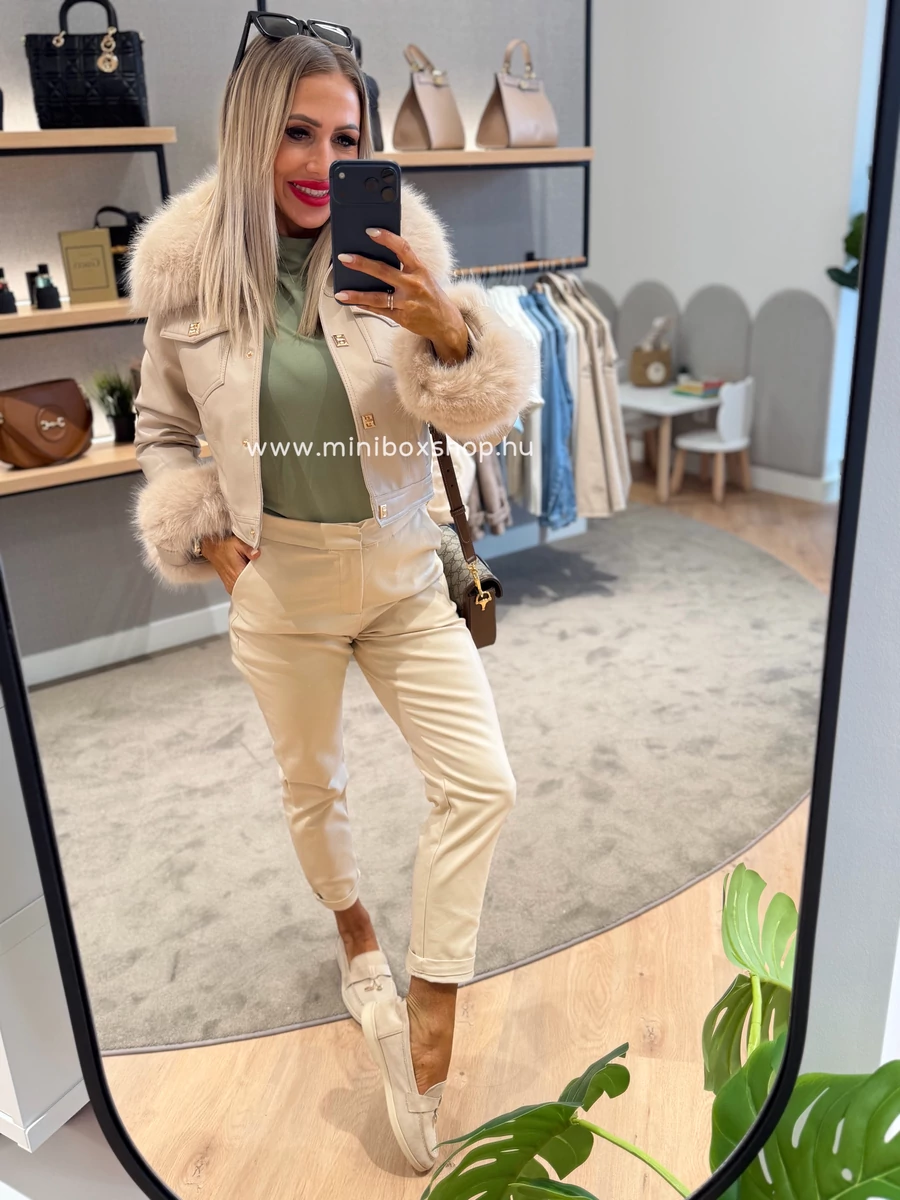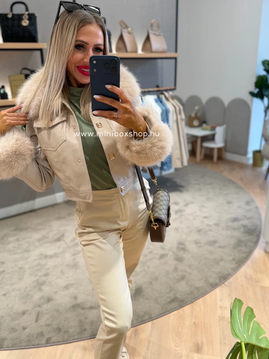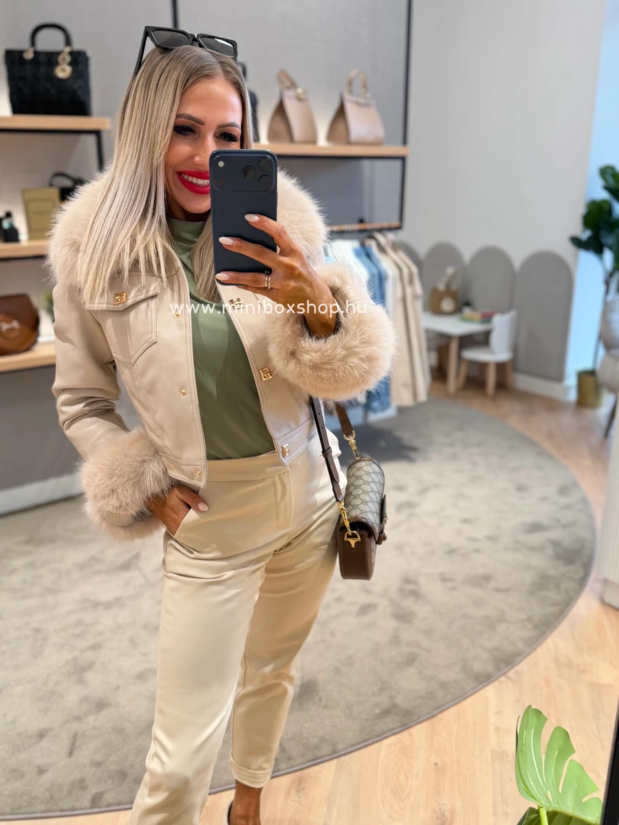 SZOFI PASTEL extra puha műbőr kabát - szőrmével