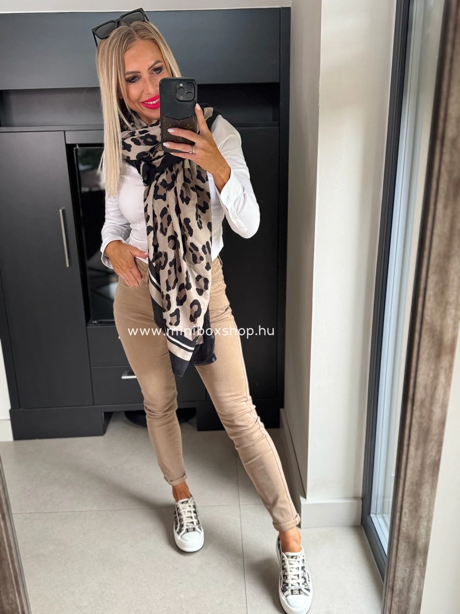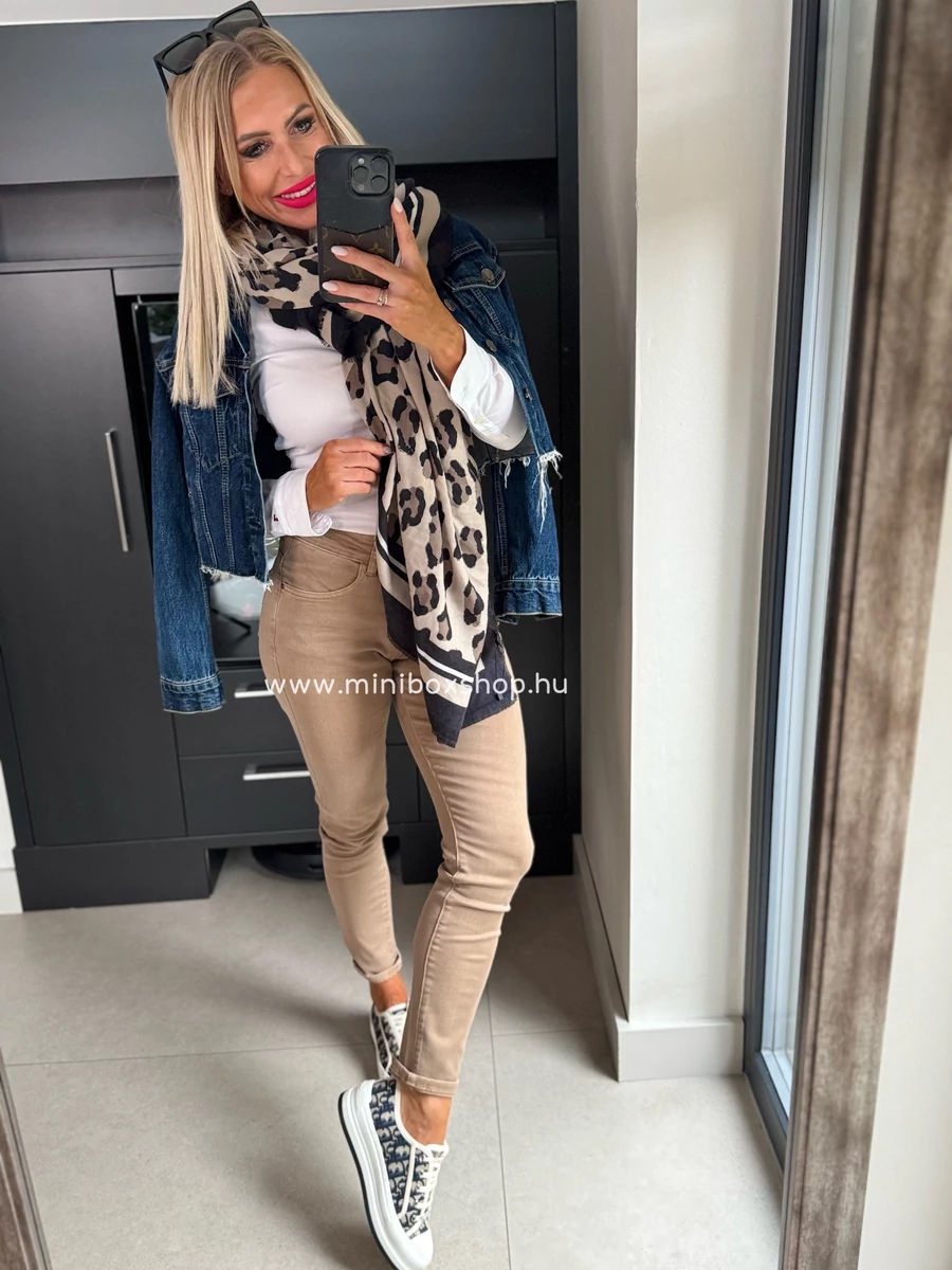 Mellényhez, bőrkabáthoz és ballonkabàthoz vettem fel, teljesen jó volt mindegyikhez, színéből adodóan pedig jól kombinàlható velük.