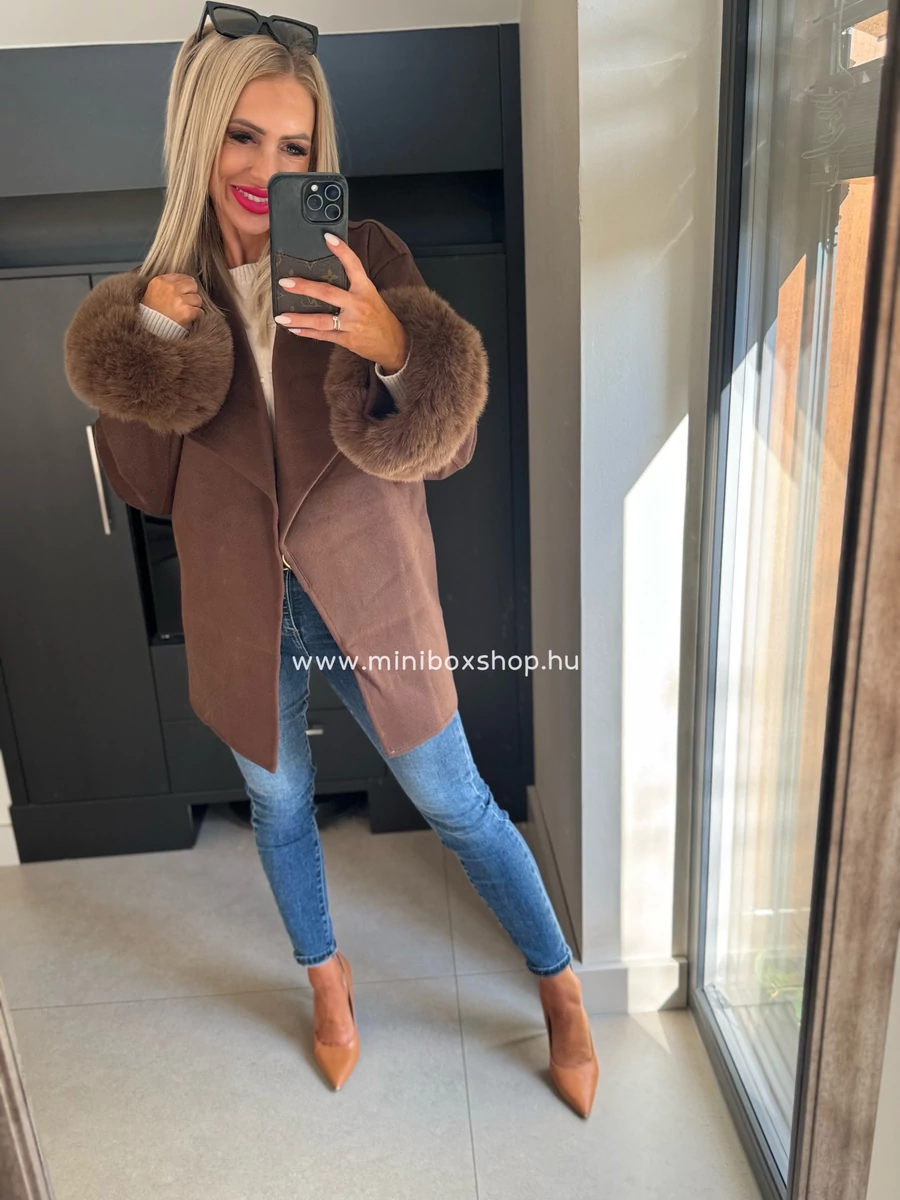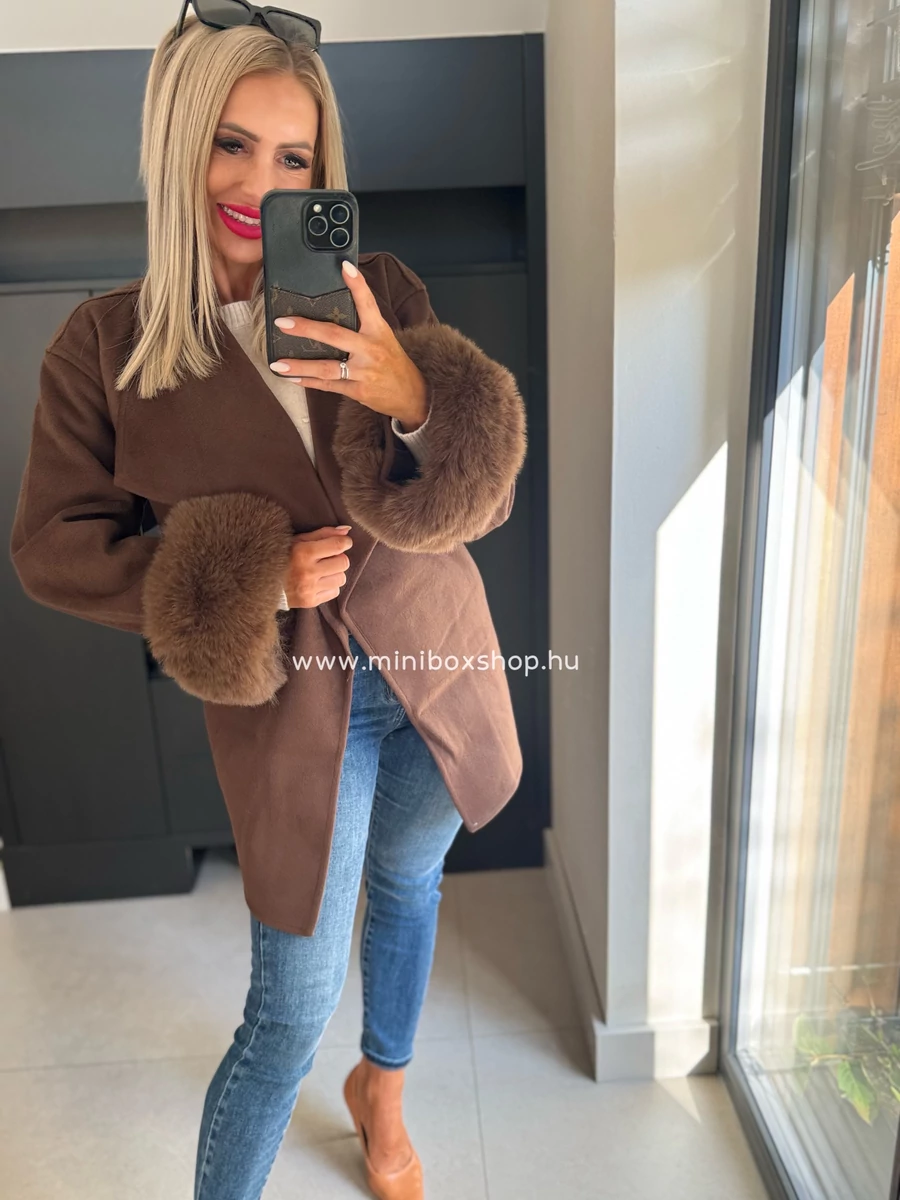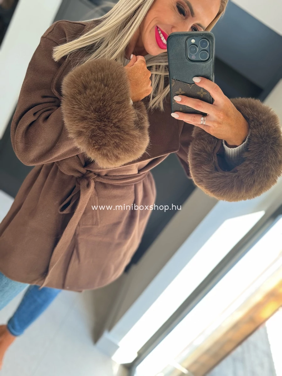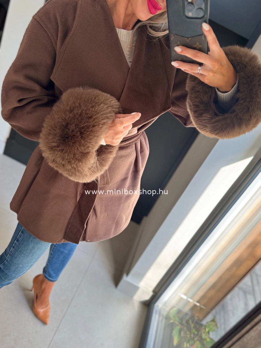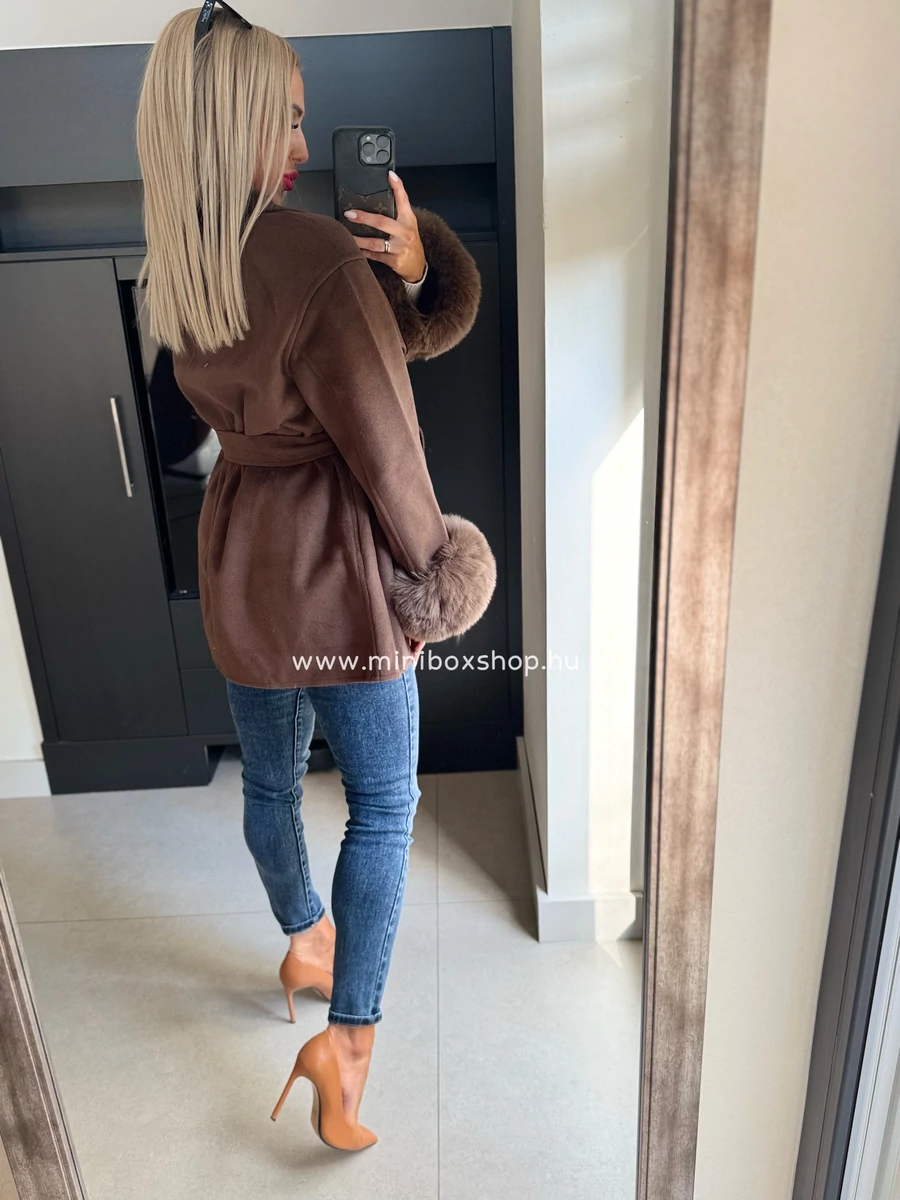 ZENNA puha szőrmés kabàtka - övvel