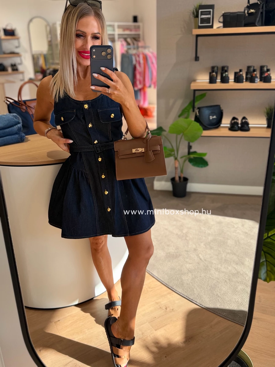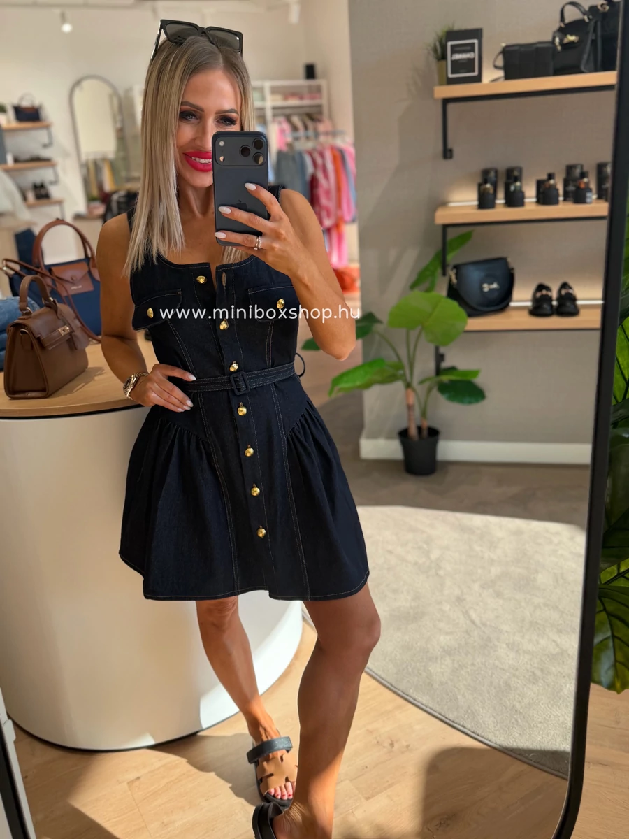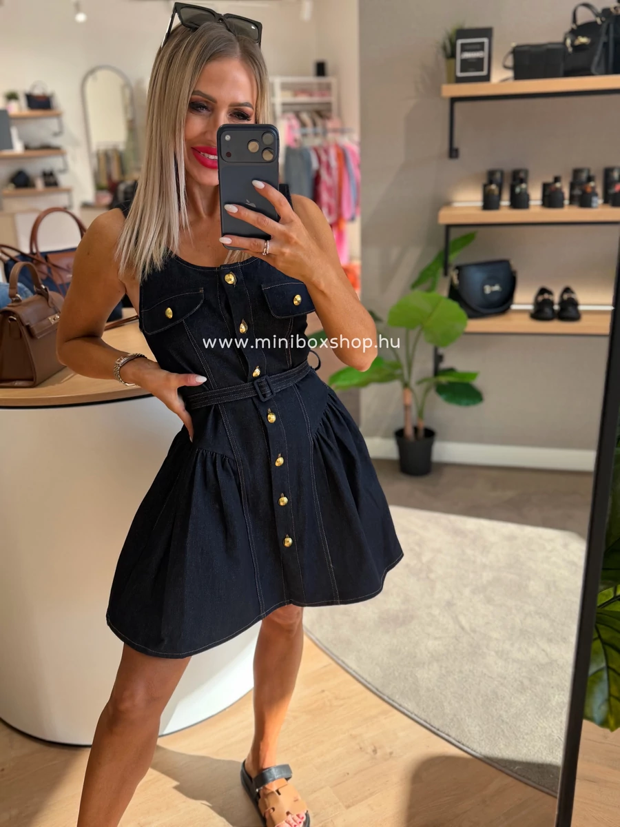 ZOZI nőies farmerruha - övvel - arany gombokkal